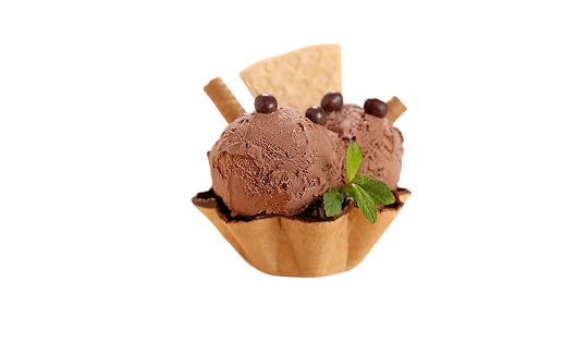 Rich chocolate cake with a molten center, served warm with a scoop of vanilla ice cream.